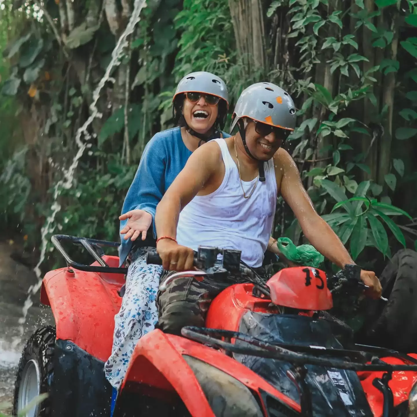 Stop for a breather at a charming jungle waterfall — ideal for relaxing or snapping a few photos. - Mud Puddles & Fun Tracks: